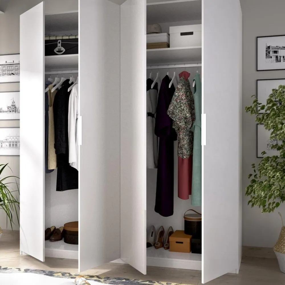 El perfecto complemento para cualquier dormitorio, así es el armario ropero Essen 4 puertas en color blanco, gran capacidad de almacenamiento de ropa en muy poco espacio. Un armario de 4 puertas a un precio muy económico.