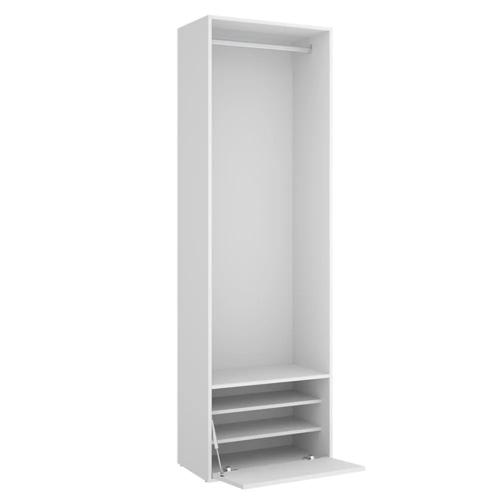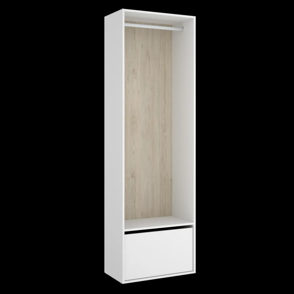 Armario de 60 cm de ancho, sin puertas, en color blanco combinado con trasera reversible en color blanco y roble natural, perfecto para añadir capacidad de almacenamiento y a cualquier dormitorio juvenil, en la parte inferior dispone de un zapatero.