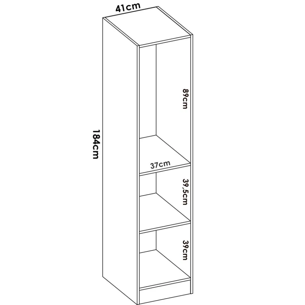 - Armario estrecho: 40,5 cm (ancho) x 184 cm (alto) x 52 cm (fondo).