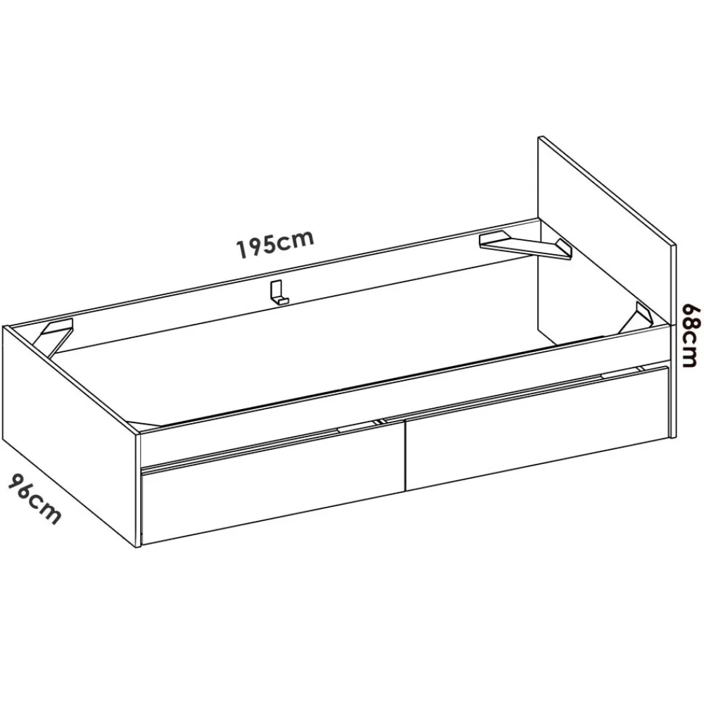 - Es necesario añadir un somier para cama de 190 cm (largo) x 90 cm (ancho), puedes comprarlo .