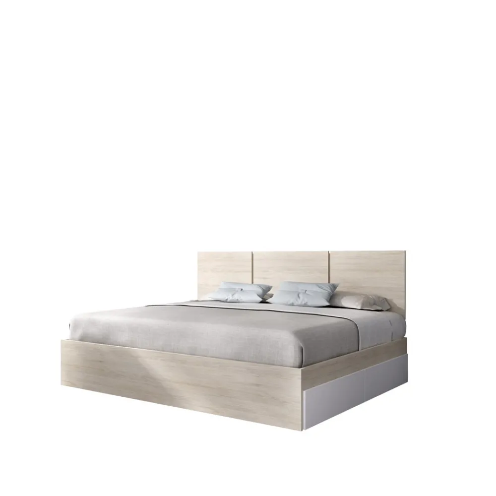 Estructura de cama con 4 cajones Havana, en color roble natural combinado con blanco en los frentes. Perfecta para añadir espacio de almacenamiento en tu habitación.