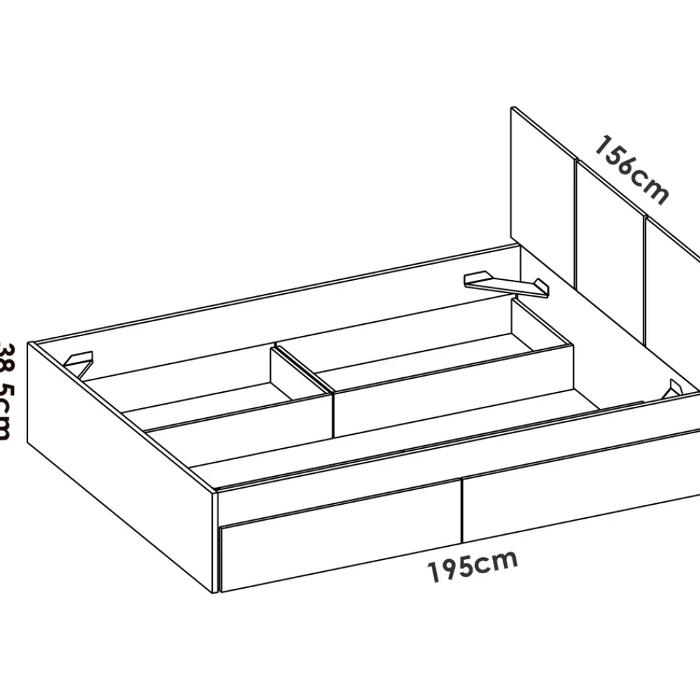La es una solución perfecta para dormitorios que necesitan espacio extra de almacenamiento. Esta cama, diseñada en un elegante color roble natural y blanco, dispone de 4 amplios cajones situados debajo del colchón. Los cajones cuentan con ruedas unidireccionales, lo que facilita su desplazamiento y acceso, permitiendo guardar edredones, almohadas y ropa de cama sin esfuerzo.