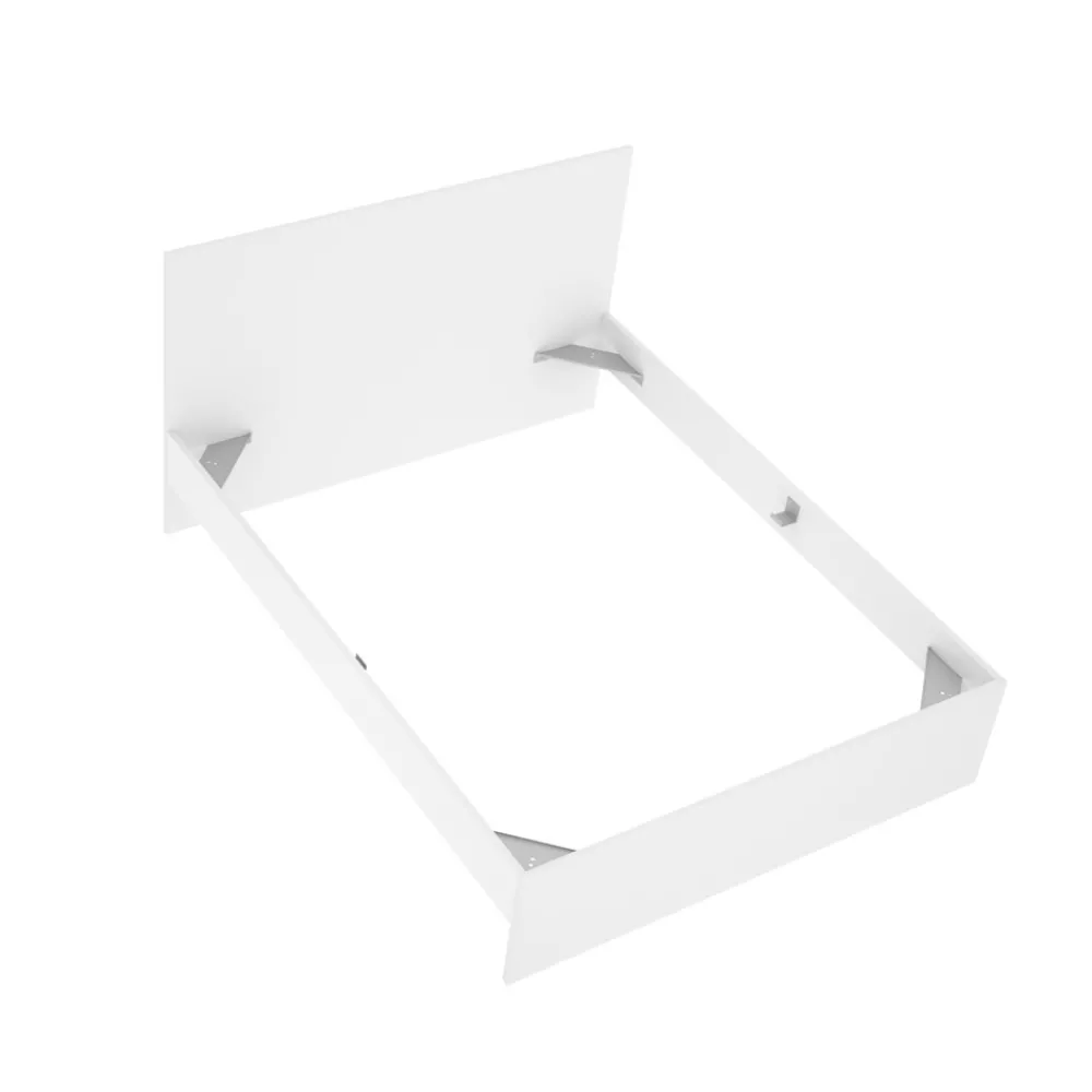La está diseñada para soportar un somier y colchón de 140 x 190 cm, ofreciendo una base firme y segura gracias a sus escuadras metálicas en las esquinas. Su color blanco puro permite una fácil combinación con cualquier tipo de tejidos y muebles de dormitorio, adaptándose a diferentes estilos decorativos.