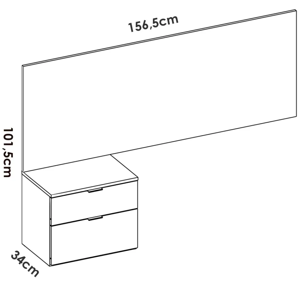- Cabecero de cama con mesita de noche: 146 cm (ancho) x 106 cm (alto) x 34,2 cm (fondo)