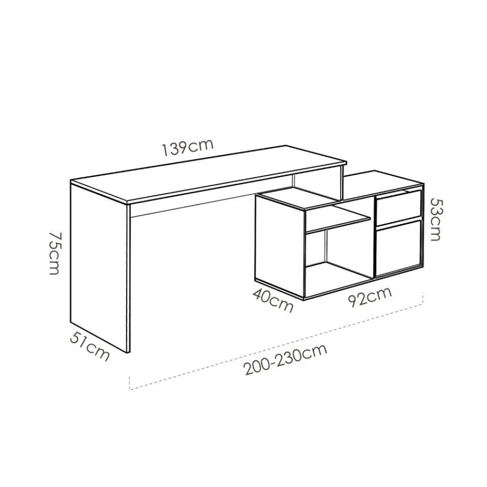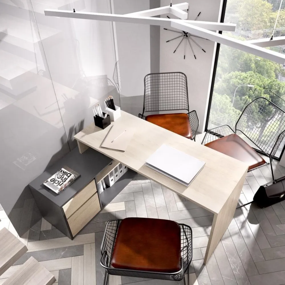 Este escritorio no es un simple mueble, es una zona de trabajo que se adapta a ti. Gracias a sus cuatro configuraciones posibles, puedes montarlo en línea o en rincón, permitiendo su colocación a la derecha o a la izquierda según lo necesites. Esta versatilidad lo convierte en una opción perfecta tanto para espacios pequeños como para grandes oficinas.