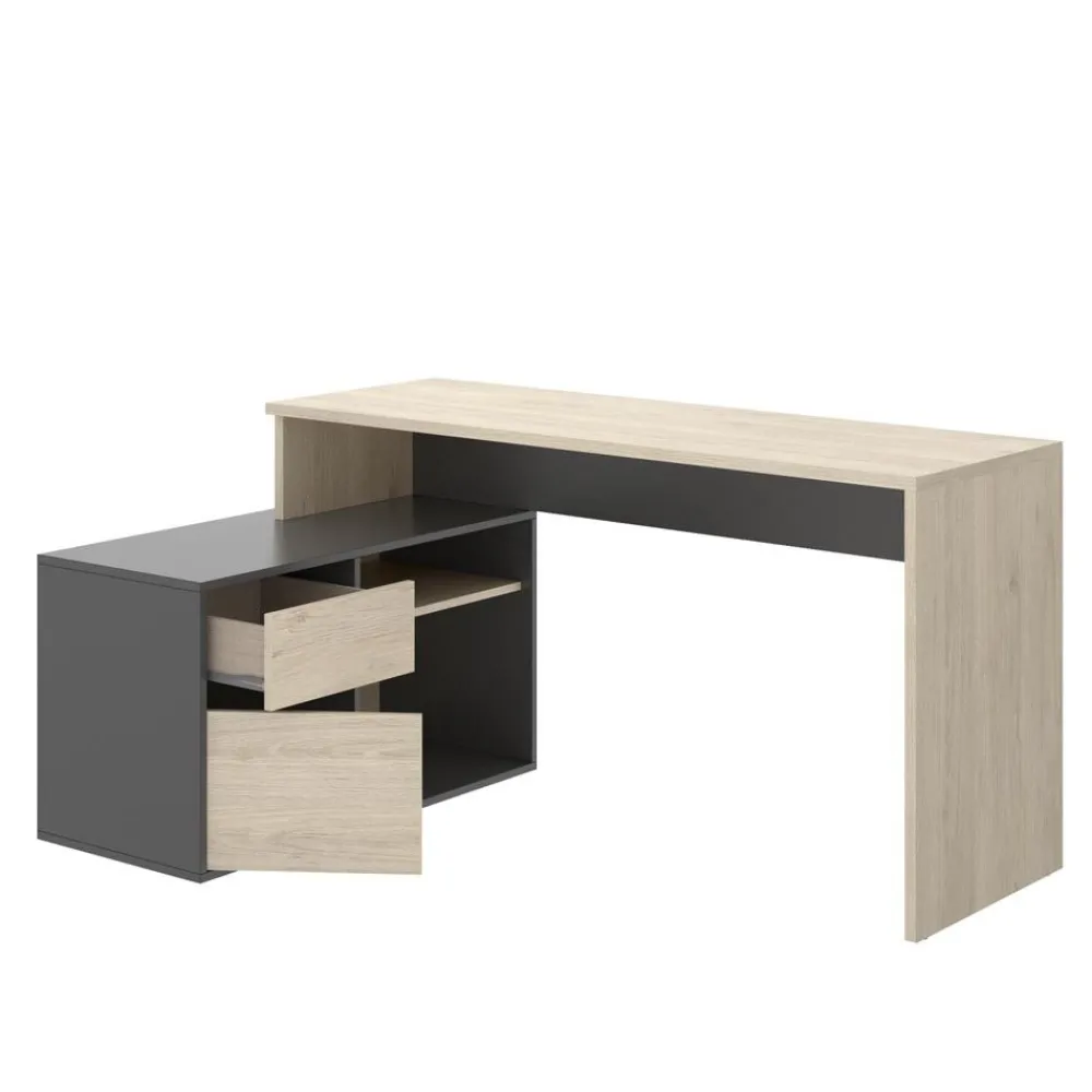 DEKIT Escritorios Esquineros Juveniles|Escritorios De Madera Juveniles^Escritorio Angular Rox Con Cajón Roble Natural – Grafito 139 X 75 X 92 Cm