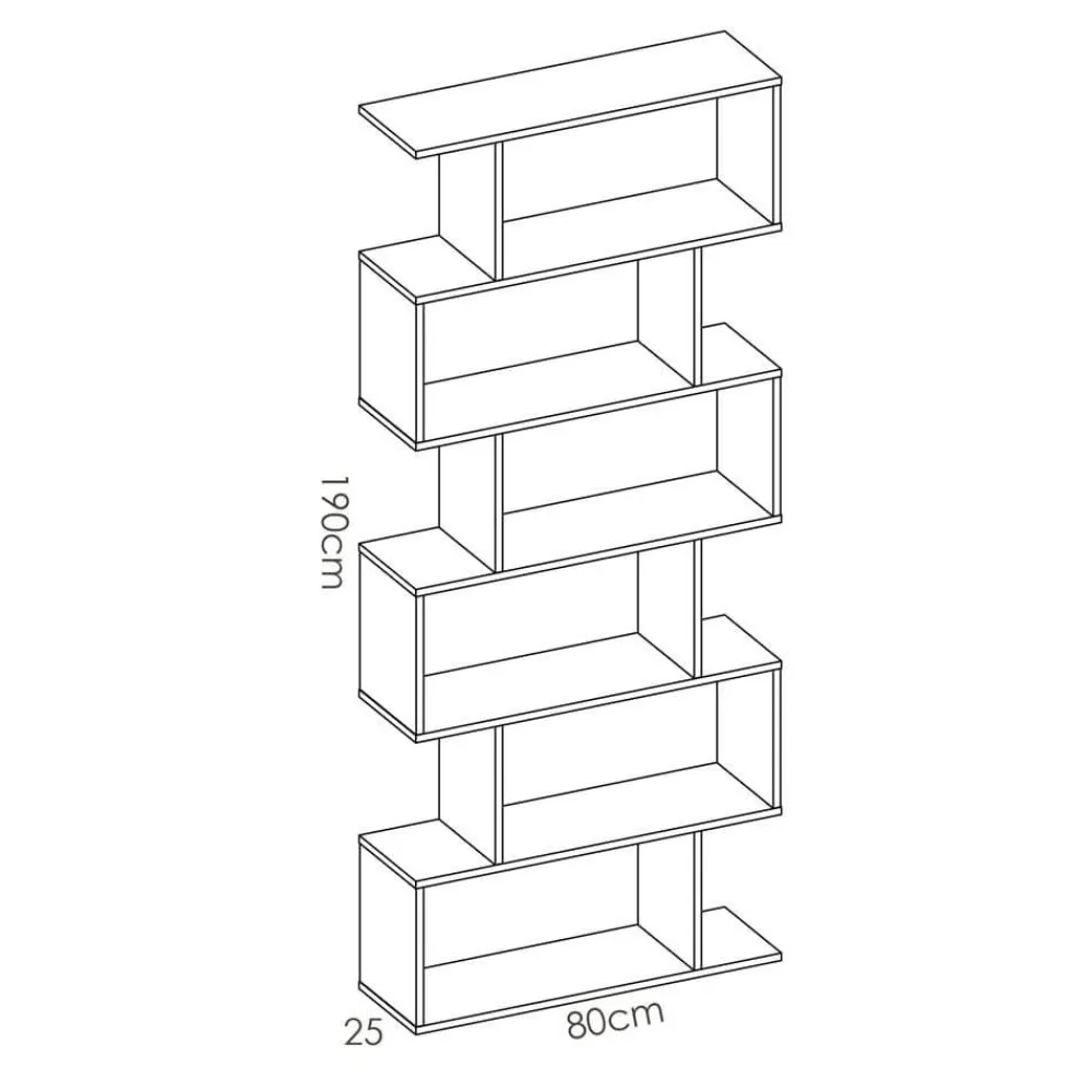 La estantería de pie alta Lis, con un bonito diseño en color blanco brillo, nos ayuda a mantener el orden en nuestro salón o dormitorio. Una estantería en forma zig-zag que será protagonista de la pared en que vaya instalada. Utilízala para colocar libros u objetos decorativos.