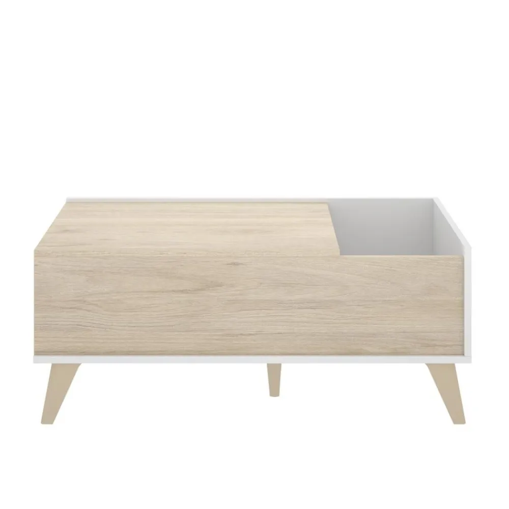 Bonito diseño para la mesa de centro elevable Ness, que va a causar sensación en tu salón. Se trata de una mesa con auxiliar de café con patas vistas en color natural, su diseño bicolor en el armazón, combinado con blanco, hacen de esta mesa una novedosa pieza de estilo nórdico válida para cualquier decoración.