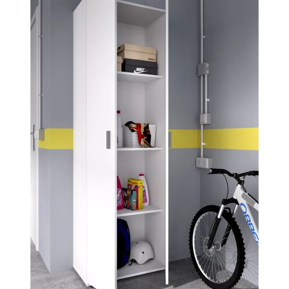 Si buscas un armario económico, con gran capacidad de almacenamiento y que puedas colocar en cualquier rincón de la casa, sin duda es el armario multiusos Fit 2 puertas en color blanco. Con patas regulables en altura anti humedad, se puede colocar como auxiliar en garaje o en cualquier rincón de la casa, su fondo de 35 cm lo hacen perfecto para cualquier sitio.