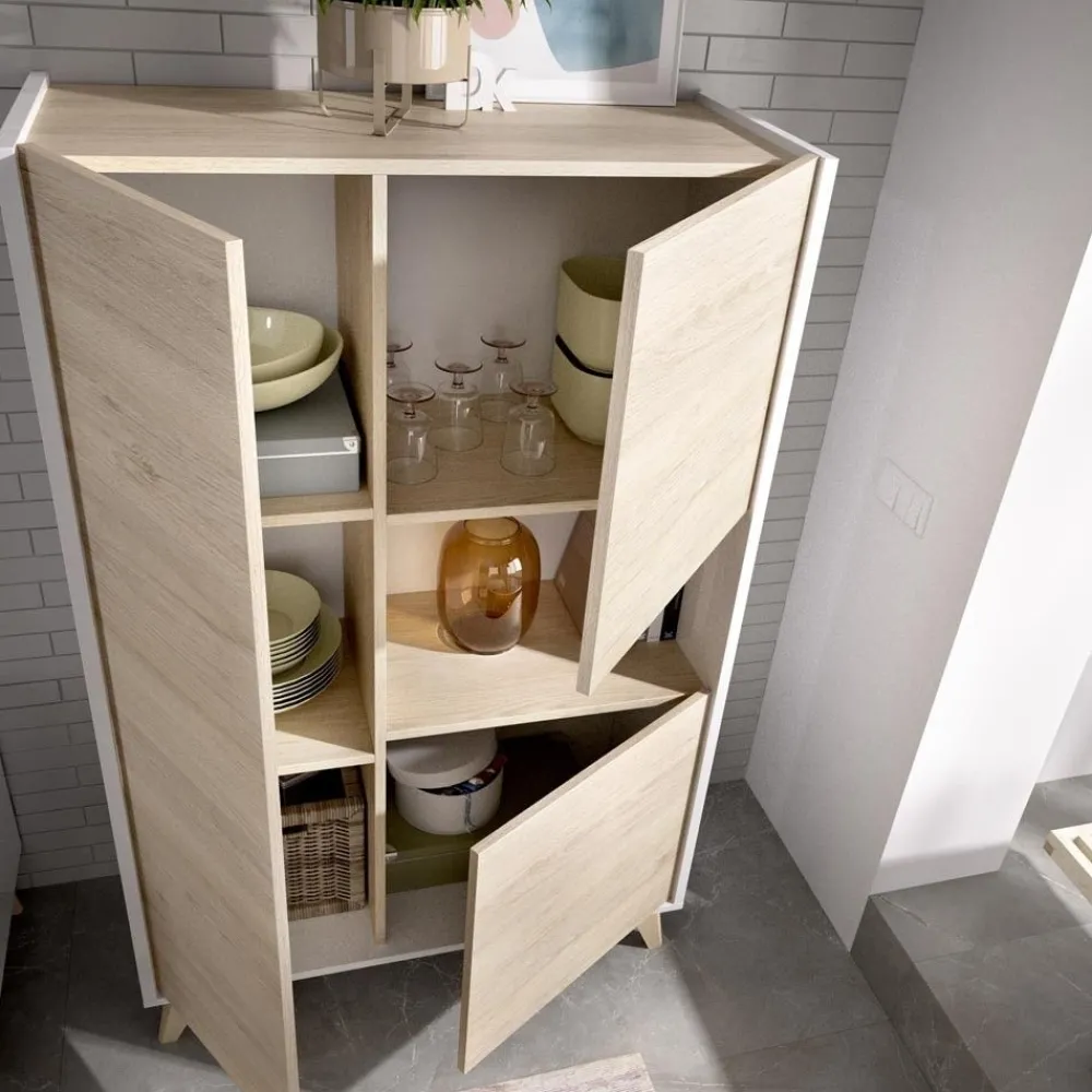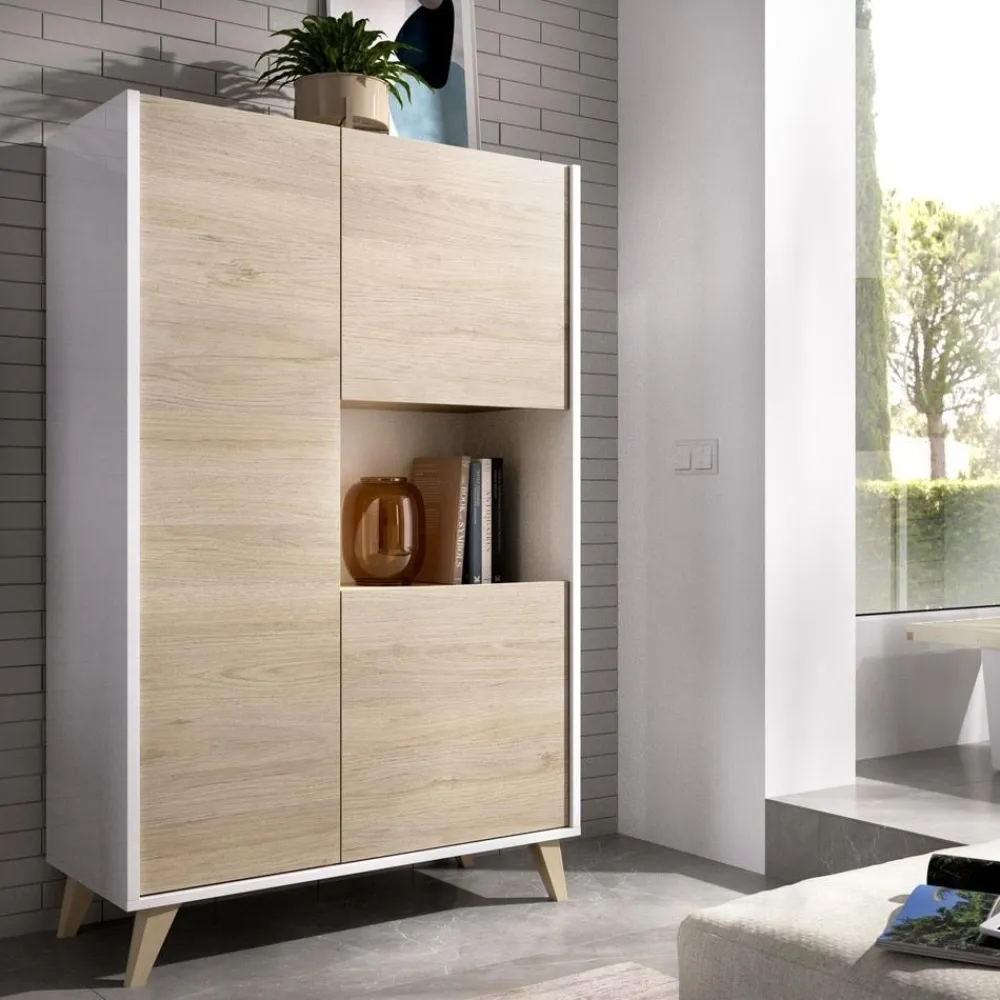Módulo vertical de estilo nórdico adaptable a diferentes estancias. Compuesto por 3 puertas y 4 estantes, nos ofrece mucho espacio de almacenaje.