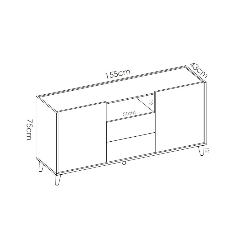 Buffet: 155 cm (ancho) x 75 cm (alto) x 43 cm (fondo)