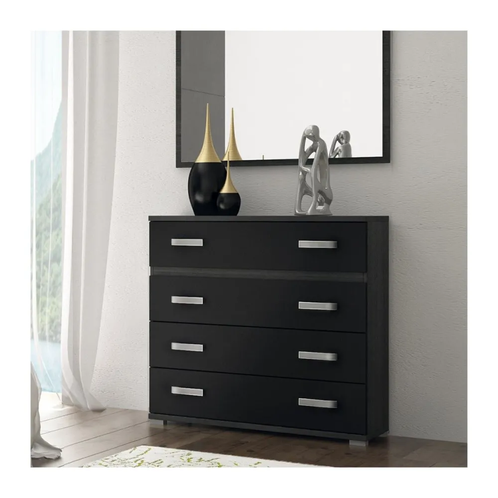 La cómoda Magic con cuatro cajones en color negro y estructura en color ceniza es muy útil para aumentar la capacidad de almacenamiento de nuestro dormitorio