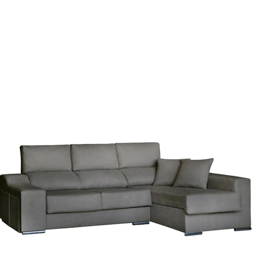 - Sofá chaise longue con arcón: 265 cm (ancho) x 100 cm (alto) x 80,5 cm (fondo sofá), 140 cm (fondo chaise longue)