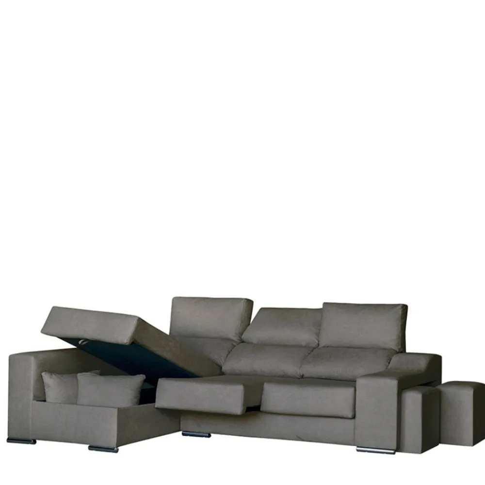 Sofá chaise longue Málaga con arcón y tapizado en tela Cairo antracita
