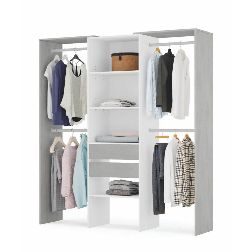FORES Armarios Blancos^Vestidor Sin Puertas 2 Cajones Tidy Blanco Artik – Cemento 179 X 202 X 50 Cm