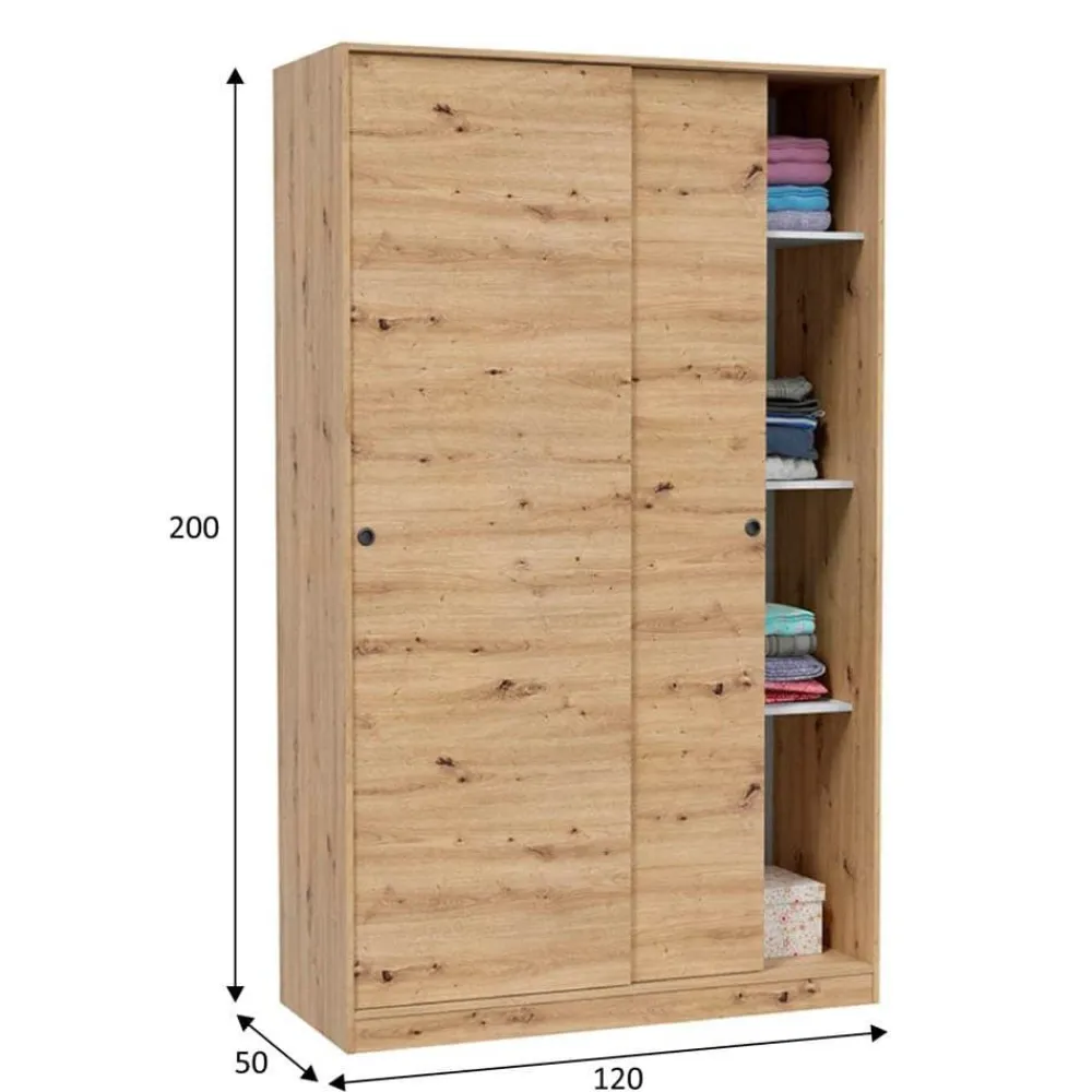 FORES Armarios Puertas Correderas^Armario Organizador De Ropa 120 Cm Roble Nodi TOP020W 120 X 200 X 50 Cm