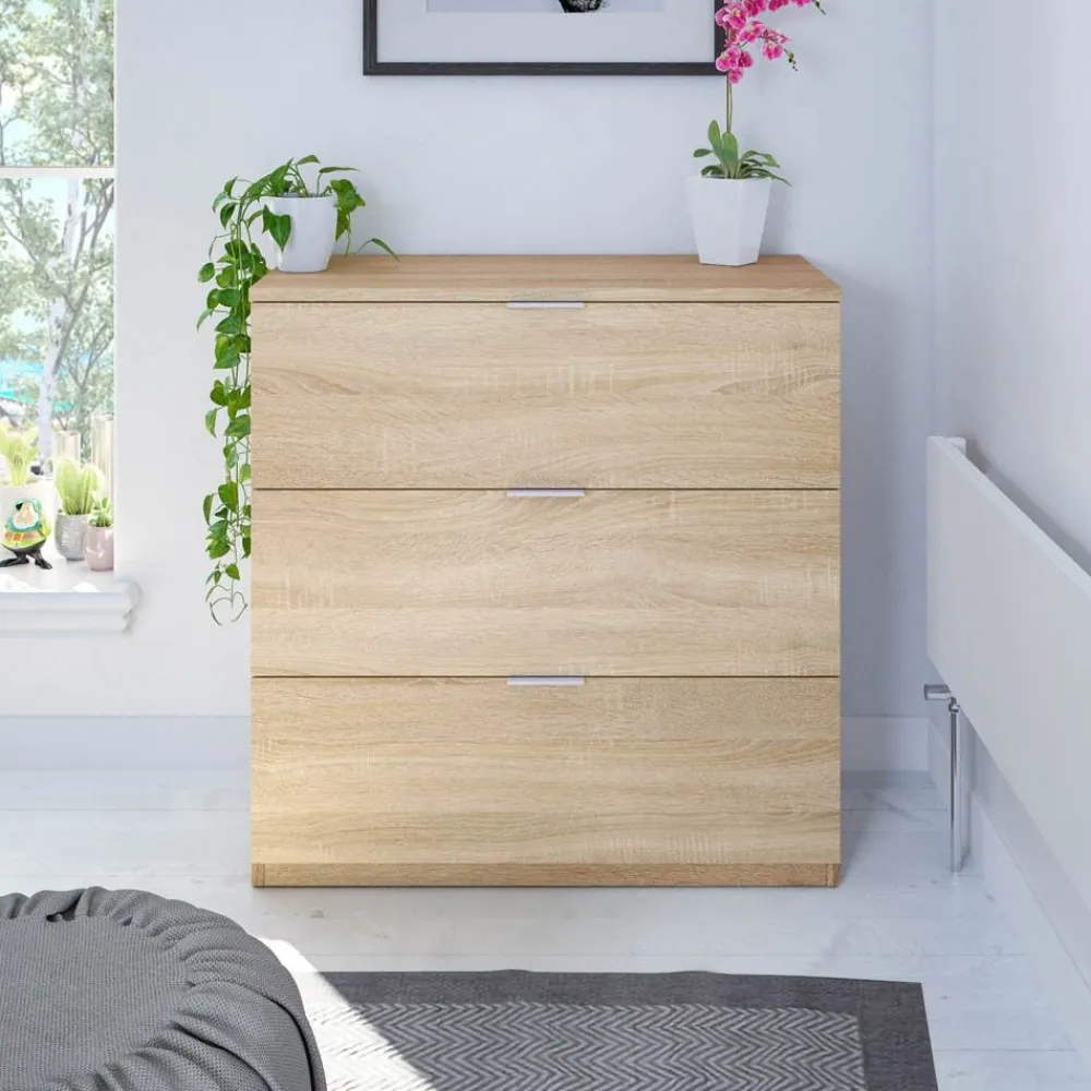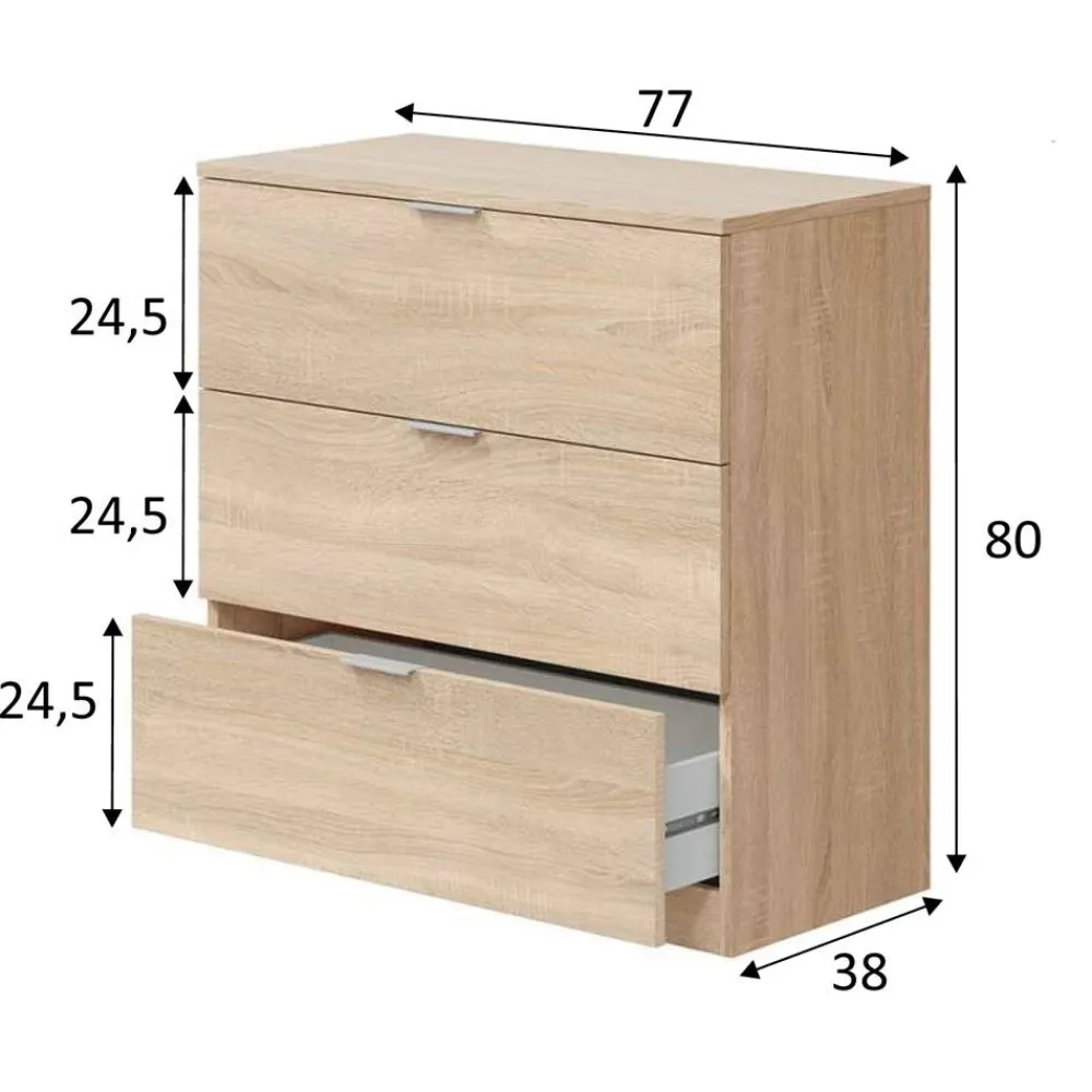 FORES C贸modas^Cómoda 3 Cajones Low Cost Roble Canadian 77 X 80 X 38 Cm