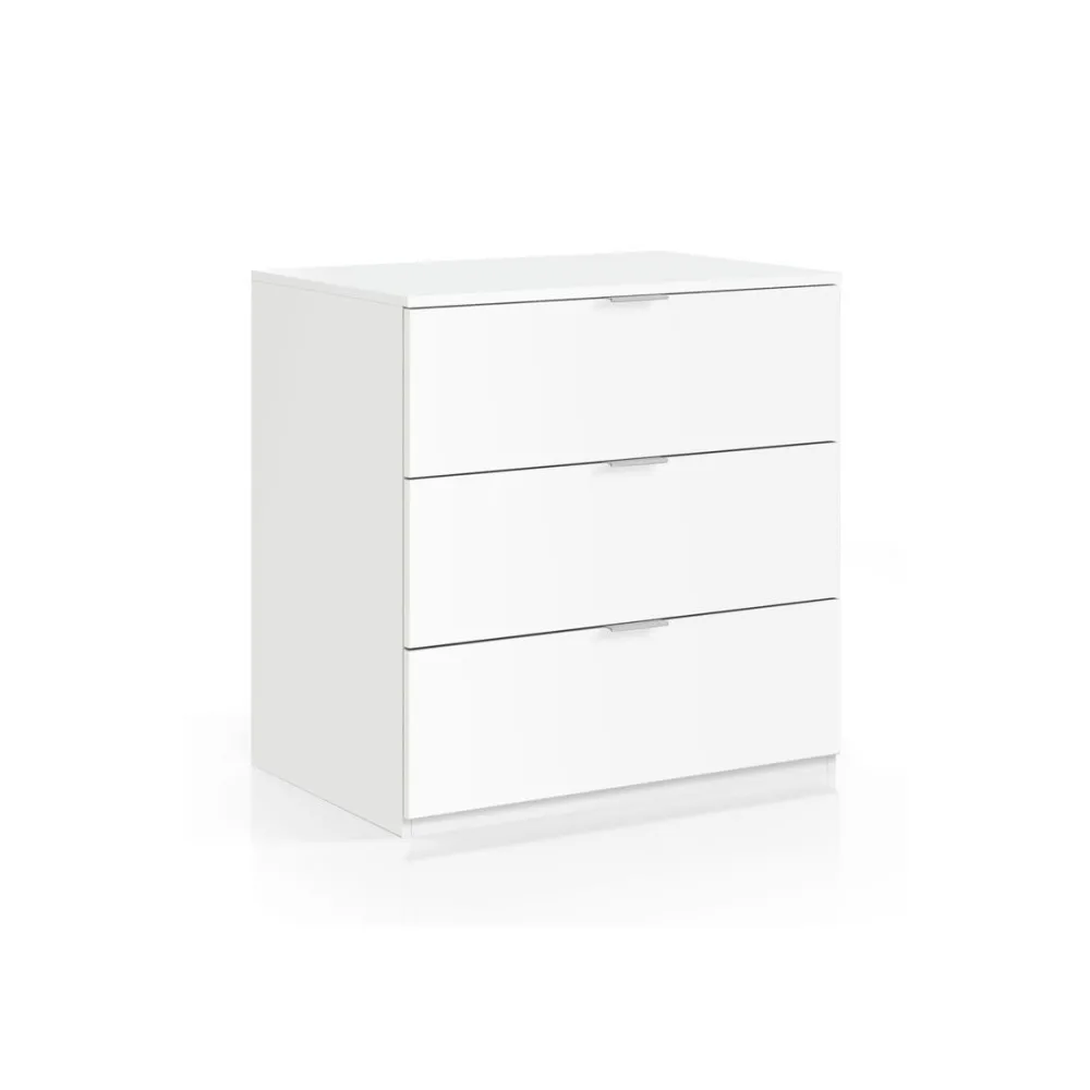 Para que puedas amueblar un dormitorio completamente Low Cost hemos añadido la cómoda de 3 cajones Low Cost en color blanco. Una cómoda de pequeño tamaño y grandes prestaciones