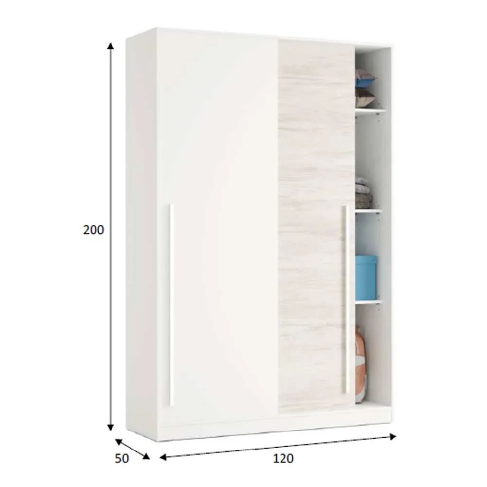 El armario TOP121A está dividido en dos cuerpos. En uno de los lados dispone de una barra de colgar aluminio extraíble y un estante superior (altillo). El otro lado cuenta con 3 estantes (4 huecos en total) para organizar ropa plegada.