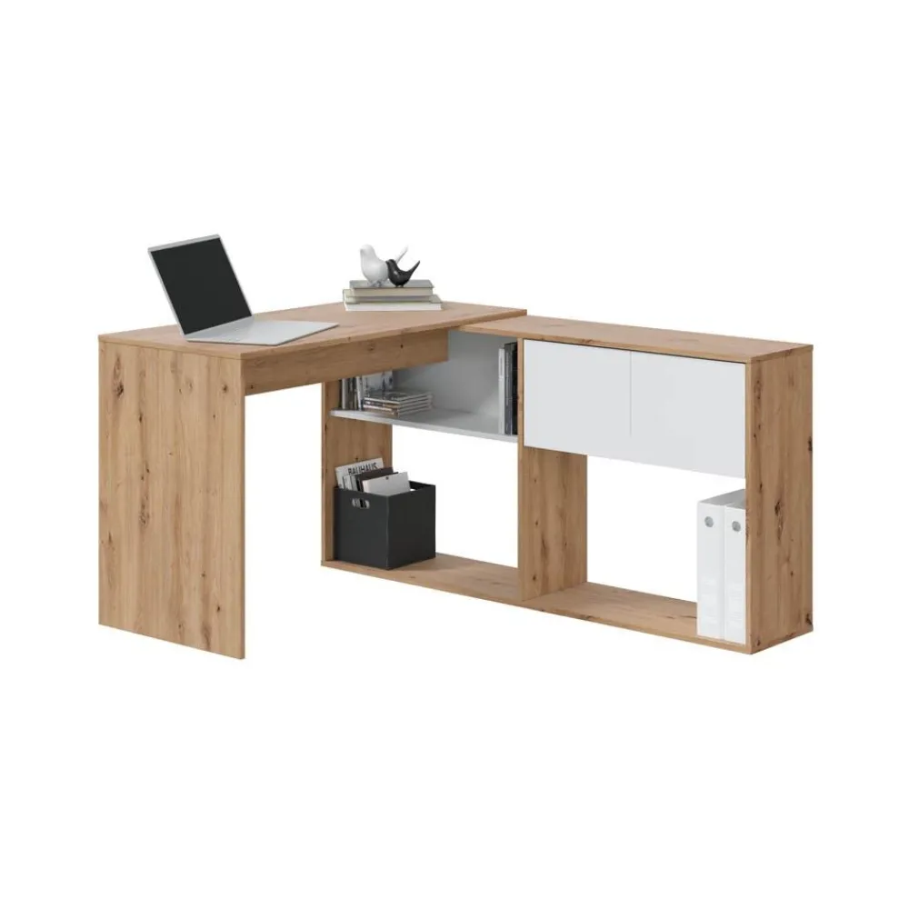 FORES Escritorios Esquineros Juveniles|Escritorios De Madera Juveniles^Mesa Escritorio Con Estantería Y Dos Puertas Duo 108 X 140 X 70 Cm