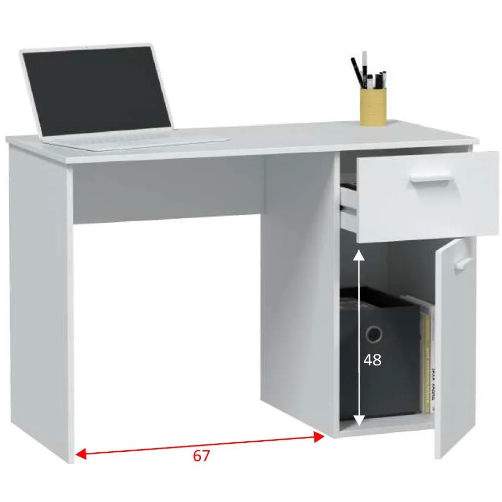 FORES Escritorios Juveniles Para PC|Escritorios Juveniles Minimalistas^Mesa Escritorio Just Blanco Artik, 1 Cajón 1 Puerta 108 X 73 X 50 Cm