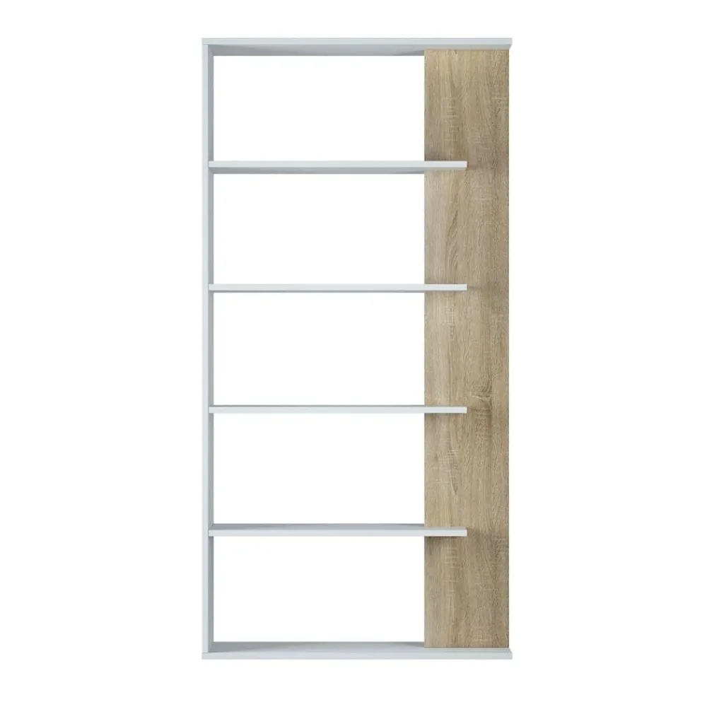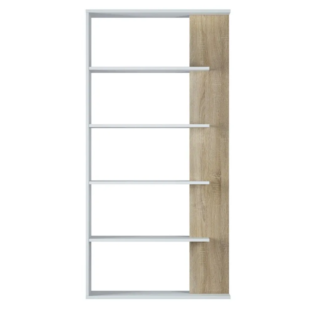 Estantería con cinco estantes Alida en color roble Canadian y blanco Artik. Perfecta para separar dos ambientes diferentes.
