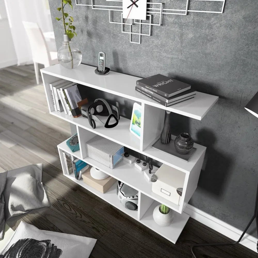 Estantería baja decorativa con amplia capacidad de almacenamiento. En here puedes comprar las estanterías de pared más baratas.