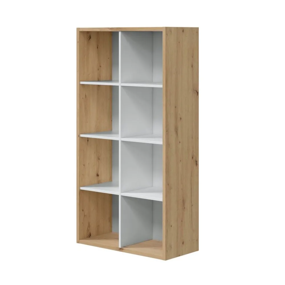 Bonita estantería juvenil en color Roble Nodi y con trasera en color blanco. Huecos de 31.5 x 31 cm para colocar libros, juguetes u objetos decorativos.
