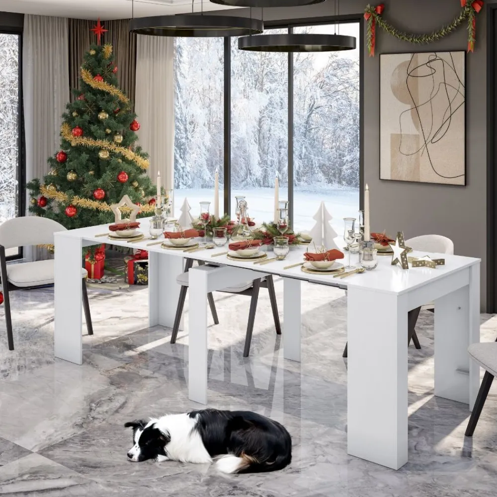 Mesa multifunción extensible con 5 posibles posiciones, mesa comedor extensible, recibidor, mesa escritorio, mesa cocina.