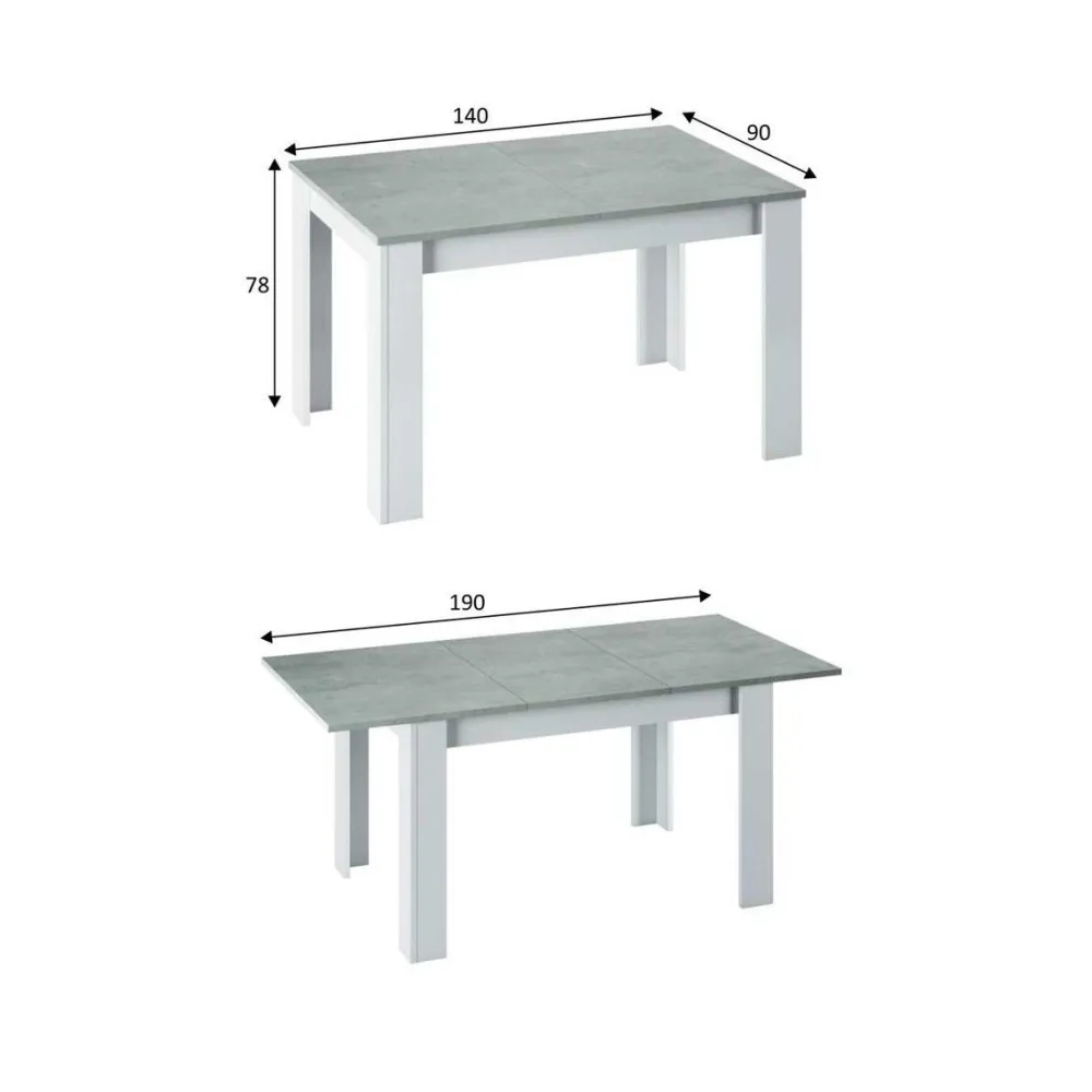 FORES Mesas De Comedor^Mesa Comedor Extensible Blanca Kendra Cemento Artik 140 – 190 X 78 X 90 Cm