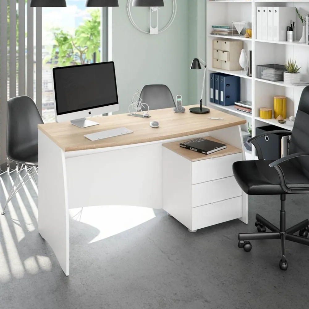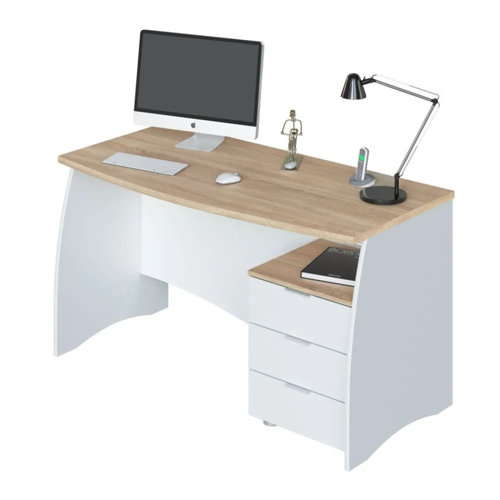 FORES Mesas De Estudio Y Escritorios Baratos^Mesa De Ofician Estil Con Tres Cajones Roble Canadian – Blanco Artik 136 X 74 X 67 Cm