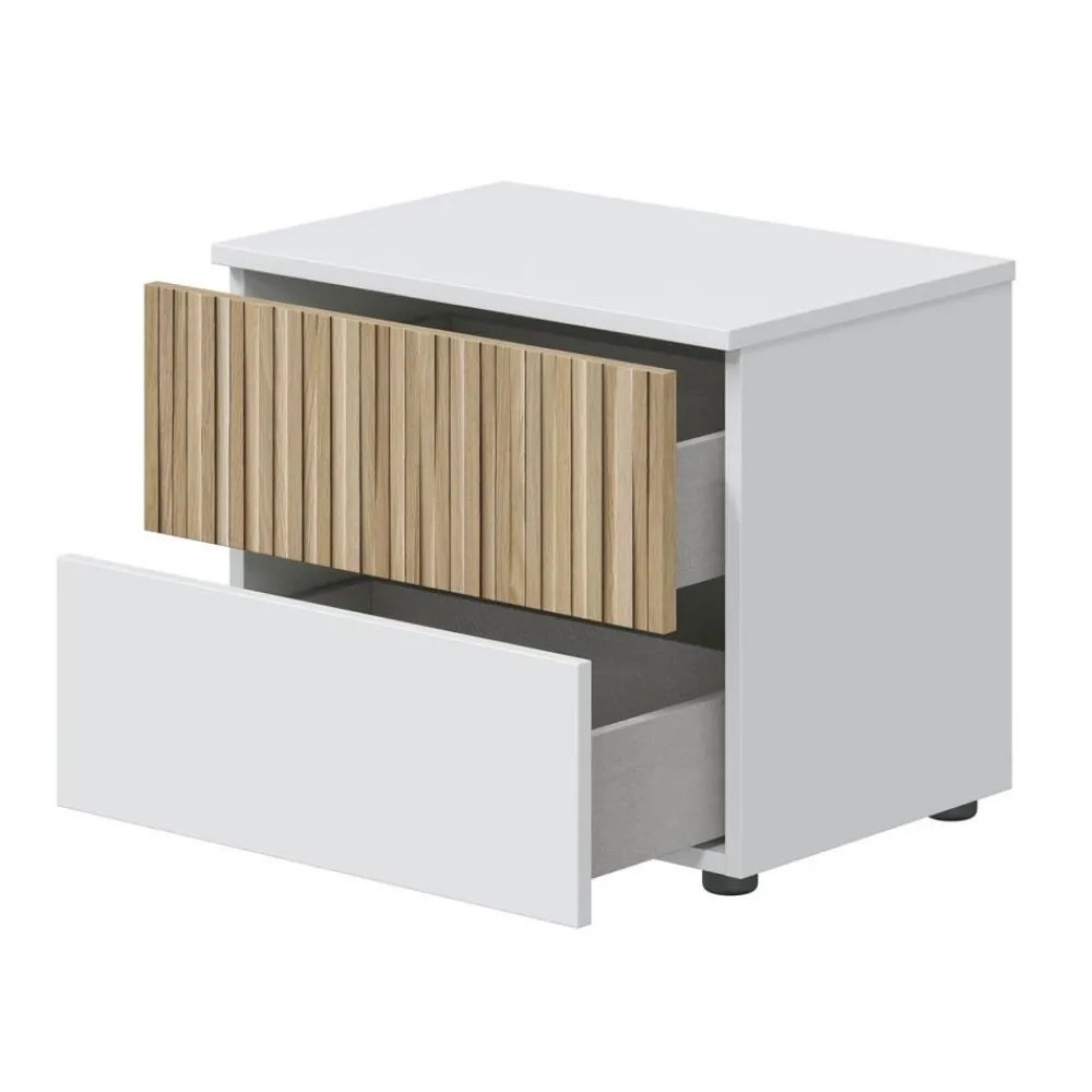 FORES Mesillas De Noche^Mesilla De Noche 2 Cajones Ethna Blanco Artik – Natur 50 X 41,5 X 34 Cm