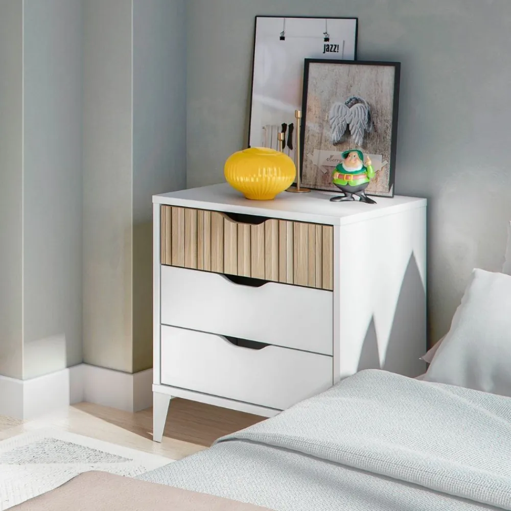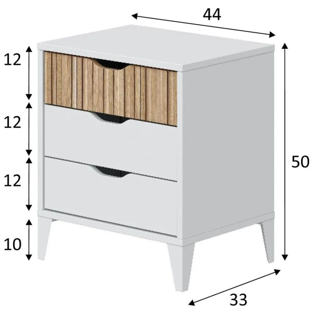 FORES Mesillas De Noche^Mesilla De Noche 3 Cajones Noite Blanco Artik – Natur 44 X 50 X 33 Cm