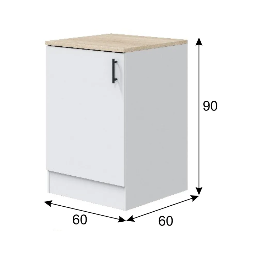 - Módulo bajo de cocina 60cm: 60 cm (ancho) x 90 cm (alto) x 60 cm (fondo)