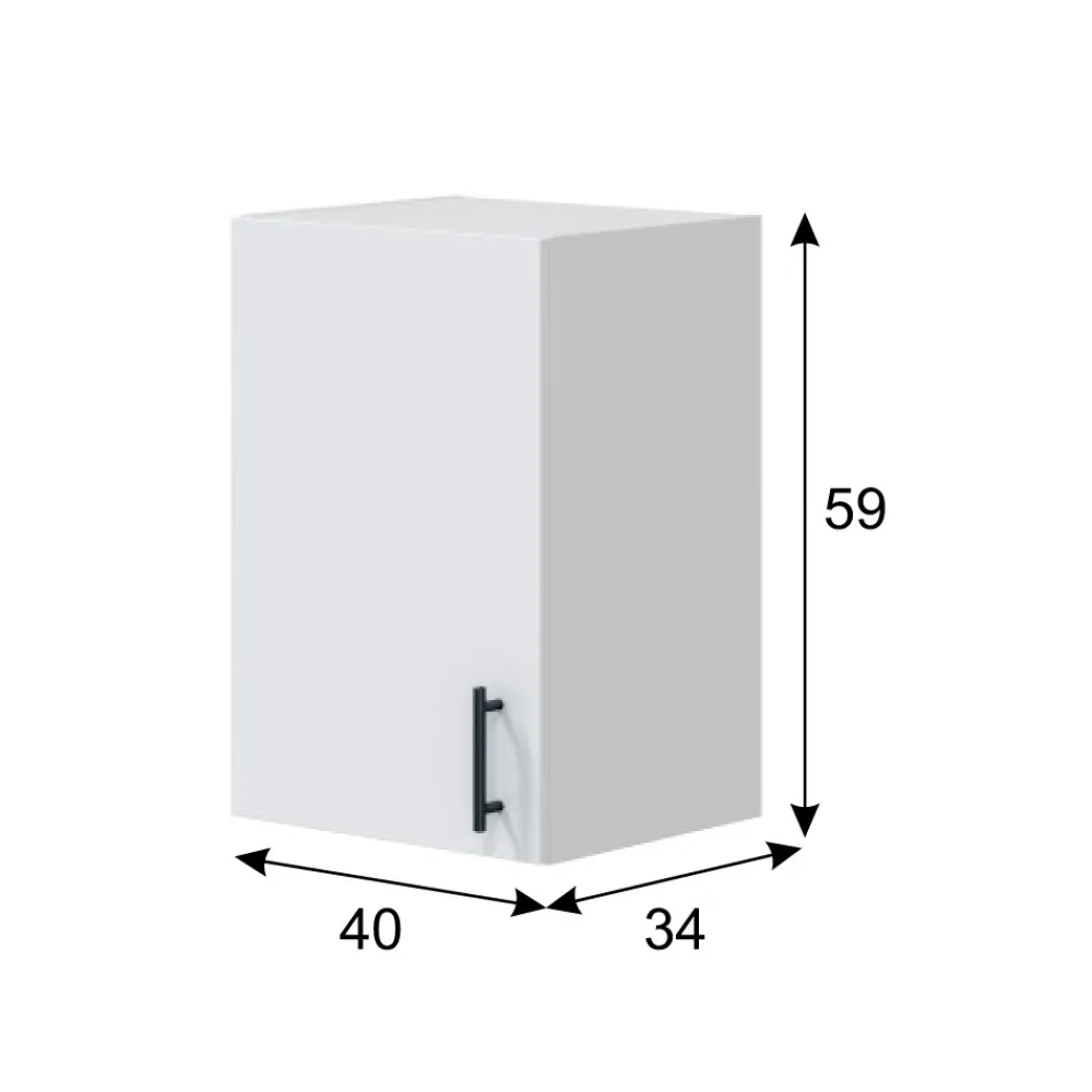 - Módulo alto de cocina: 40 cm (ancho) x 59 cm (alto) x 34 cm (fondo)