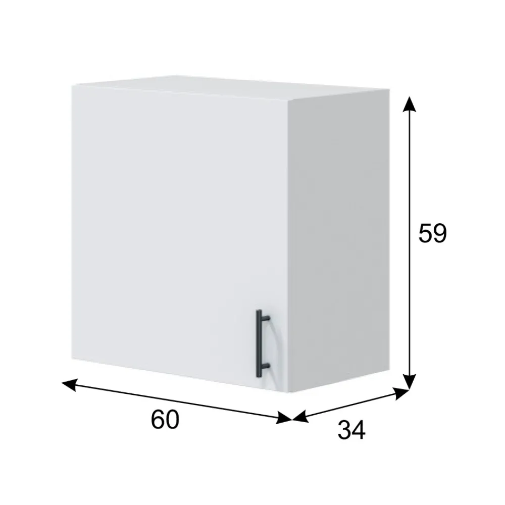 - Módulo alto de cocina: 60 cm (ancho) x 59 cm (alto) x 34 cm (fondo)