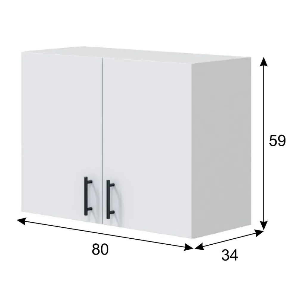 - Módulo alto de cocina: 80 cm (ancho) x 59 cm (alto) x 34 cm (fondo)