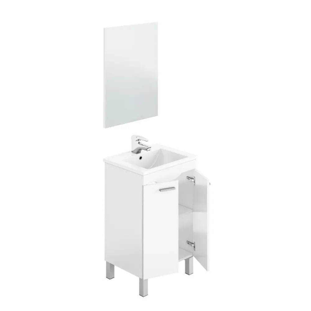 FORES Muebles De Lavabo^Mueble De Baño Pequeño Con Espejo Madrid Koncept 2 Puertas Blanco Brillo