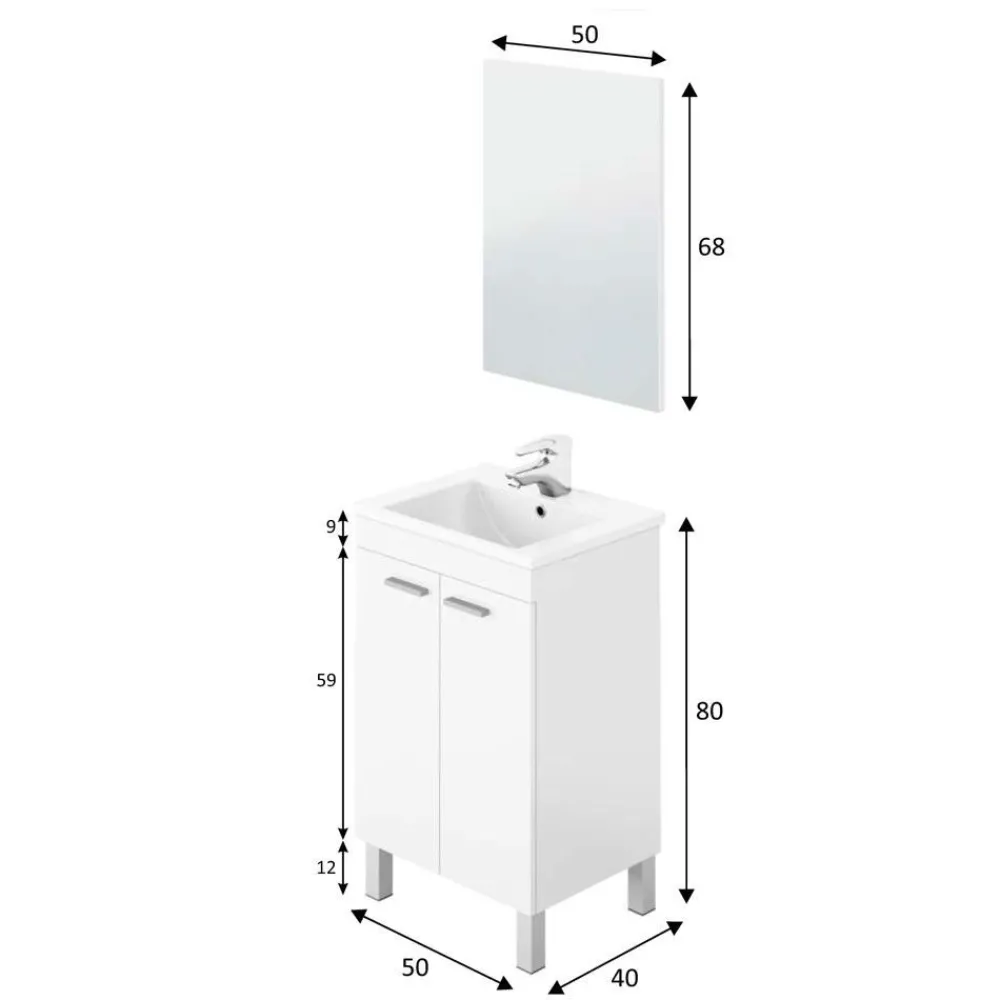 Mueble de baño de 50 cm con 2 puertas y espejo