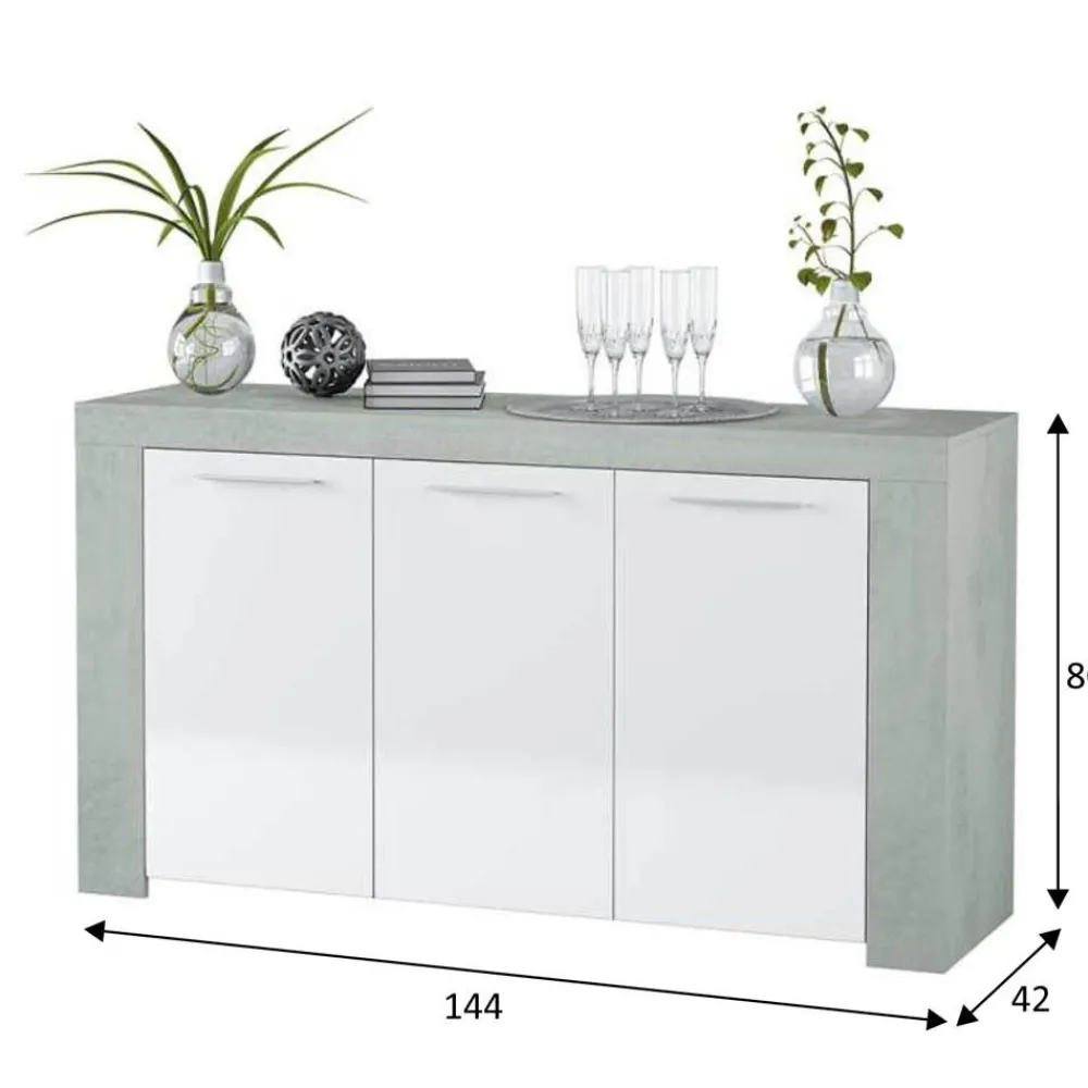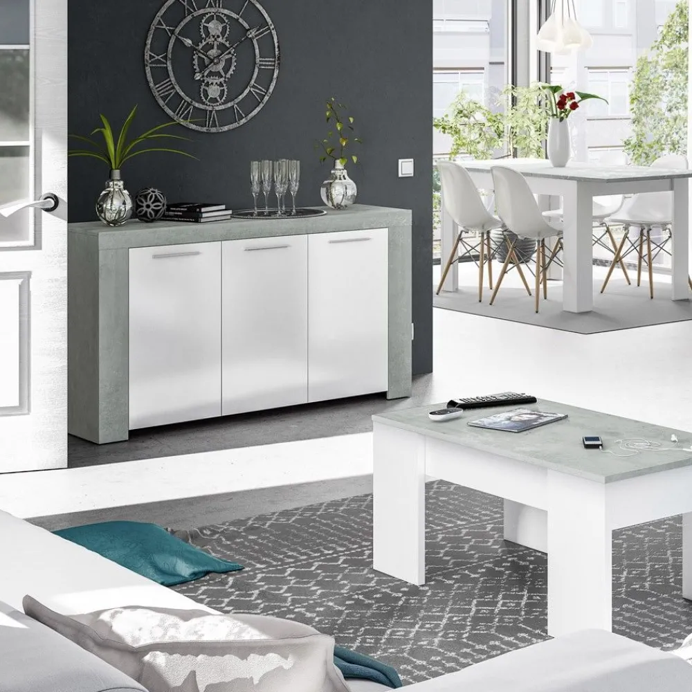 FORES Muebles De Salón^Aparador Ambit Cemento Y Blanco Artik 3 Puertas 144 X 80 X 42 Cm