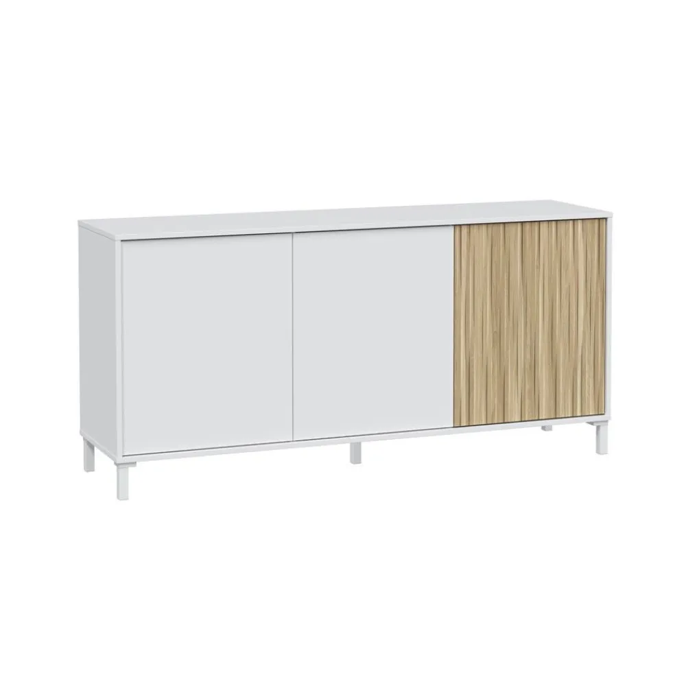 FORES Muebles De Salón^Aparador De 3 Puertas Ethna Blanco Artik – Natur 154 X 74 X 40 Cm