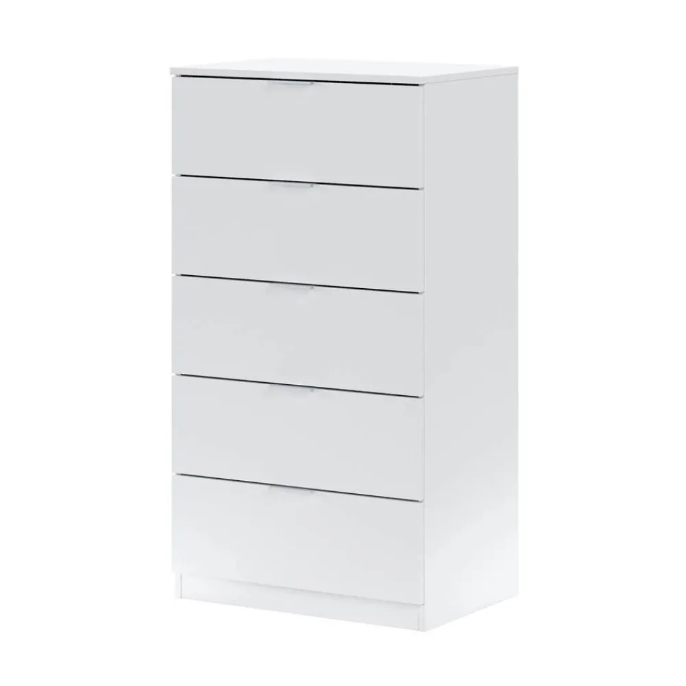 Sinfonier de cinco cajones en color blanco Artik, aumenta la capacidad de almacenaje de cualquier dormitorio.