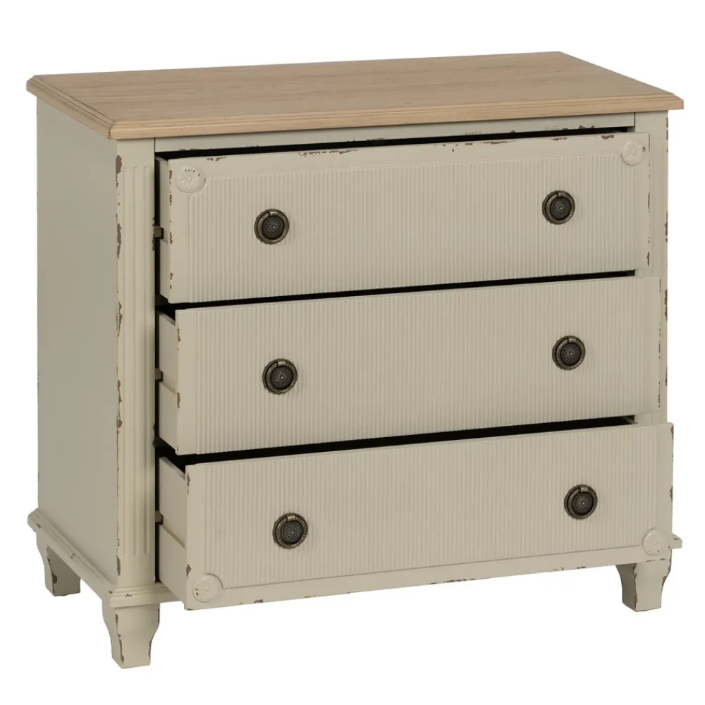 IXIA C贸modas^Cómoda De Madera Abeto Vintage 3 Cajones Crema 80 X 73 X 38 Cm