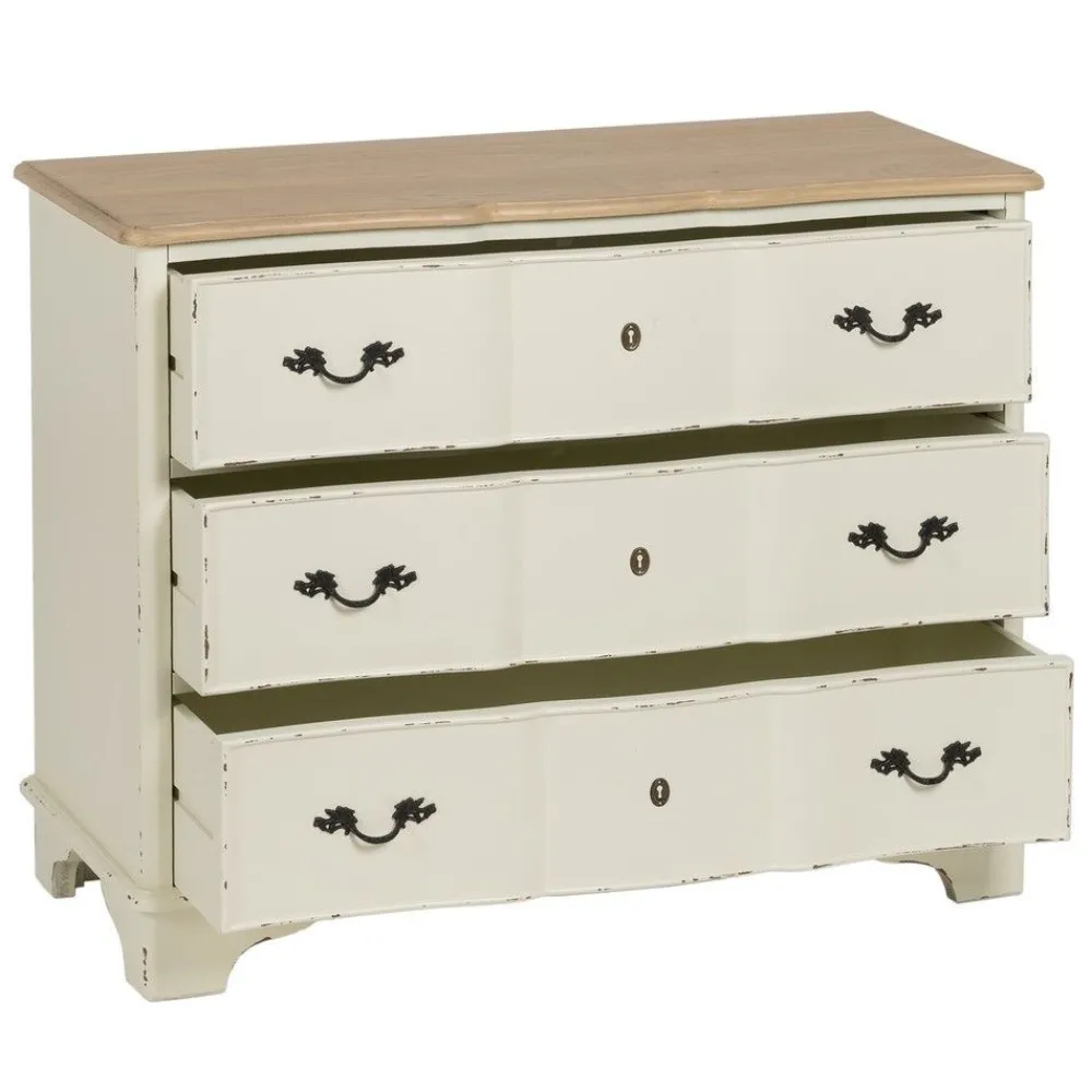 IXIA C贸modas^Cómoda De Madera De Abeto Vintage Crema – Natural 3 Cajones 100 X 80 X 45 Cm