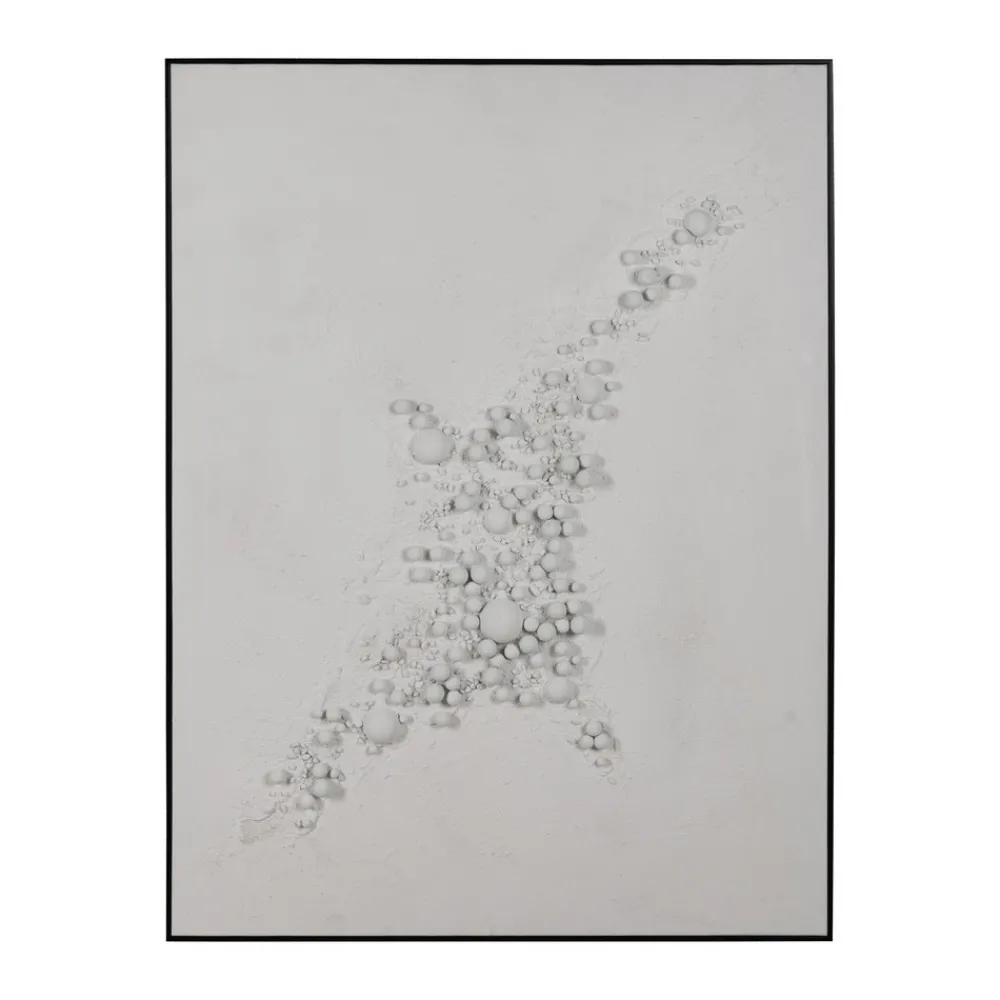 Este , pintado a mano, destaca por su diseño minimalista en tonos blancos con detalles en relieve, que aportan textura y profundidad a tus paredes. Fabricado en lienzo de alta calidad y enmarcado con poliestireno resistente, es una opción duradera y elegante para cualquier espacio.