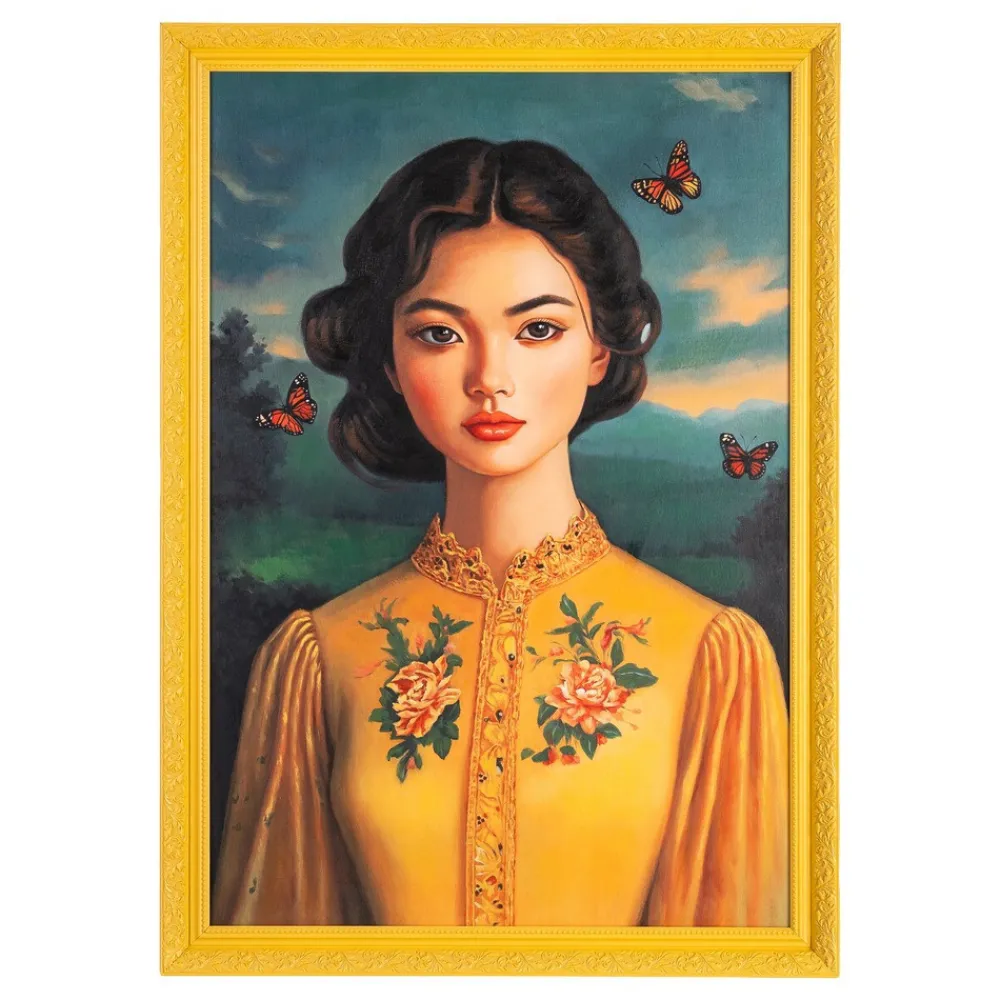 IXIA Cuadros^Cuadro Pintado A Mano Mujer En Amarillo Con Mariposas 80 X 116 X 3,5 Cm