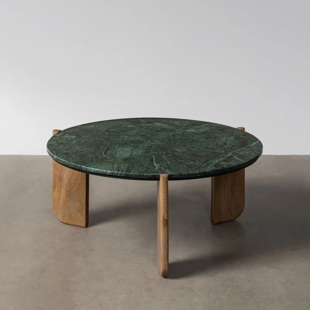 IXIA Mesas Auxiliares^MESA CENTRO NATURAL-VERDE MADERA-MÁRMOL 80 X 80 X 35 CM