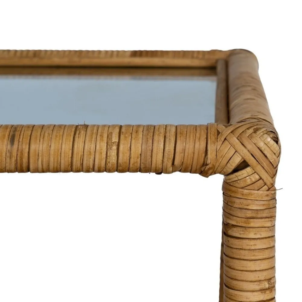 Mesa de centro rectangular en ratán y cristal – Elegancia natural para tu salón