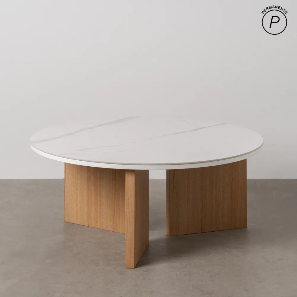 IXIA Mesas Auxiliares^Mesa De Centro Redonda Encimera Cerámica Blanca 80 X 35 X 80 Cm