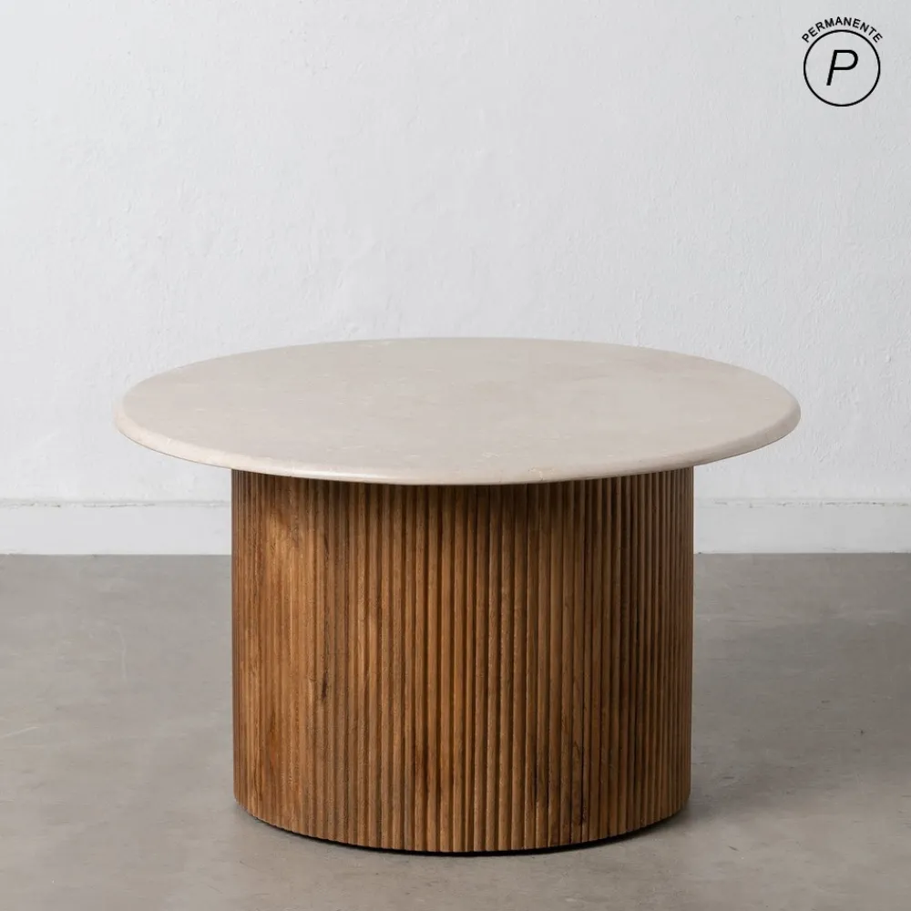 IXIA Mesas Auxiliares^Mesa De Centro Redonda Stone Madera De Mango Y Mármol Blanco – Natural Ø76 X 45 Cm